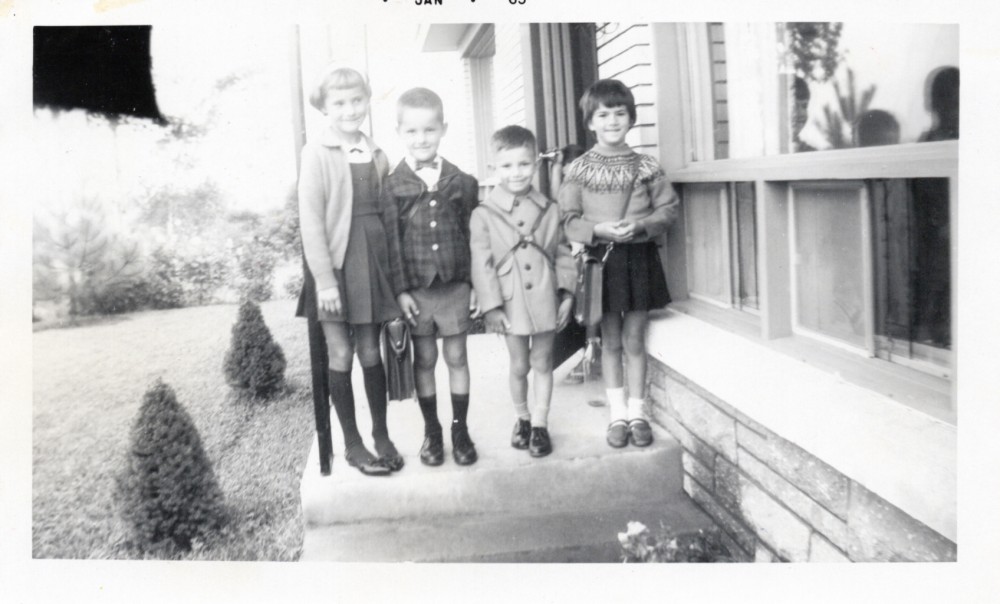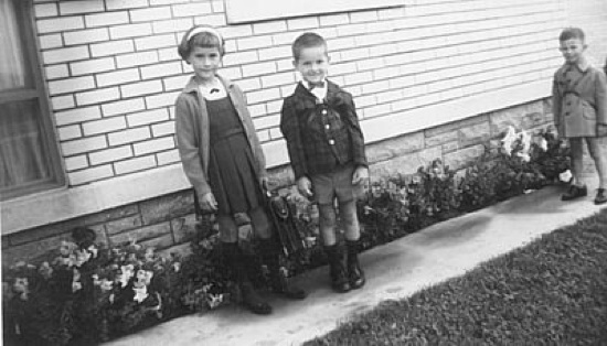 1er jour d'école. Guy n'étant qu'onze mois et demie plus jeune que Diane, et selon les règles des calendriers scolaires, il a pu commencer l'école en même temps que sa soeur, qui n'était pas du tout contente...