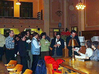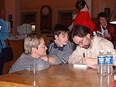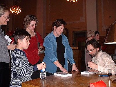 Lancement du livre L’Effet Casimir, quatrième roman de Guy. Signature du livre dédié à France. Sur la photo, de gauche à droite, Dominique, Dimitri, Marie, France et Guy.
